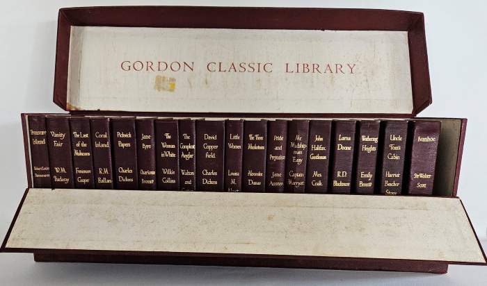 Whilst these books are not rare in the strictest bibliographic sense, Gordon Classic Library editions are valued for their presentation and completeness. Sets are typically sold in original boxes, and individual volumes are sometimes available through vintage book dealers.